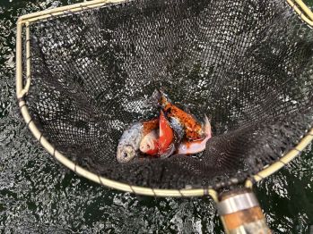 大草魚X2、ニゴイ、錦金魚&金魚多数と