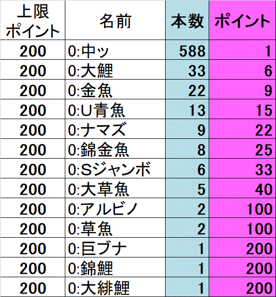 残り5時間残して、ナマズ&ウルトラ青魚orスーパージャンボでOKという